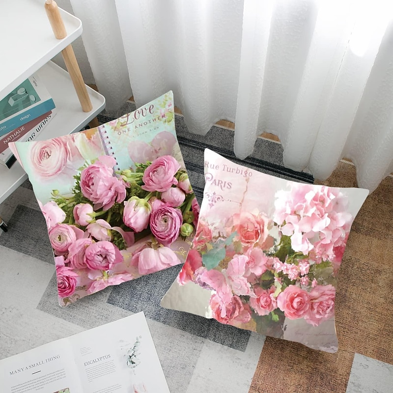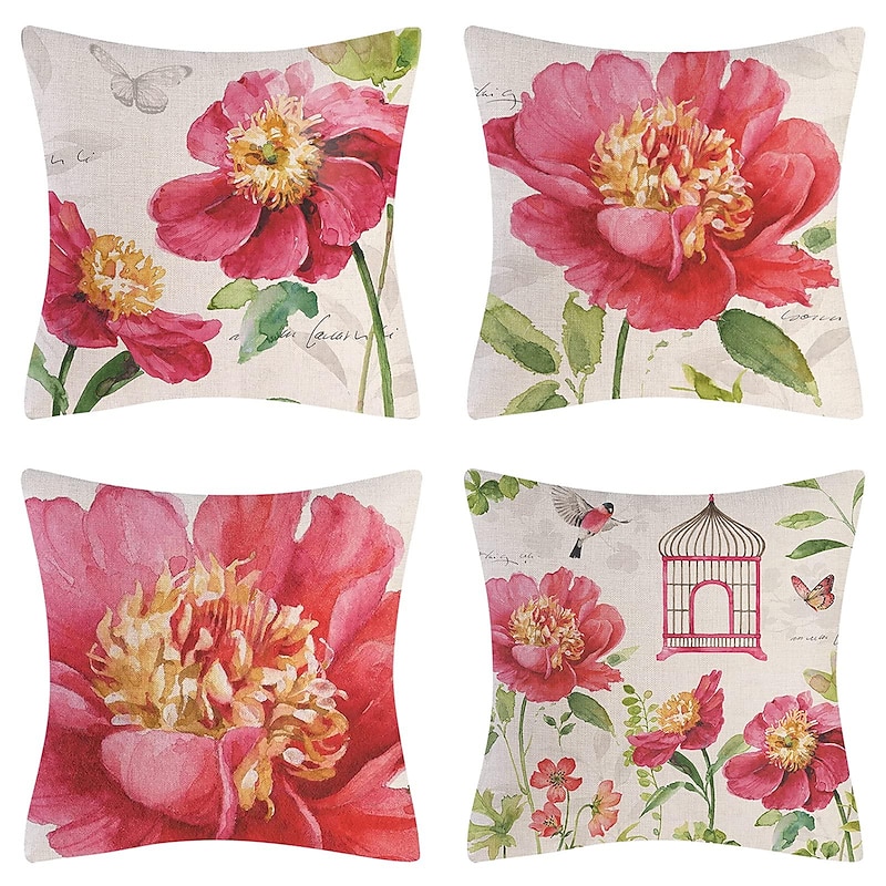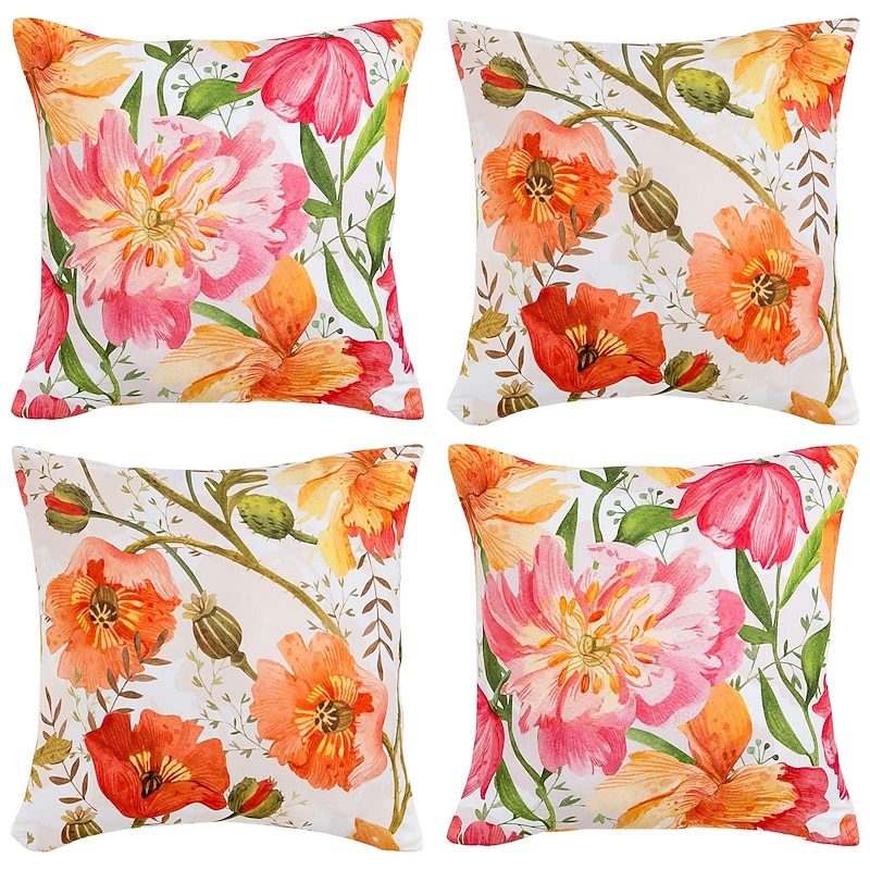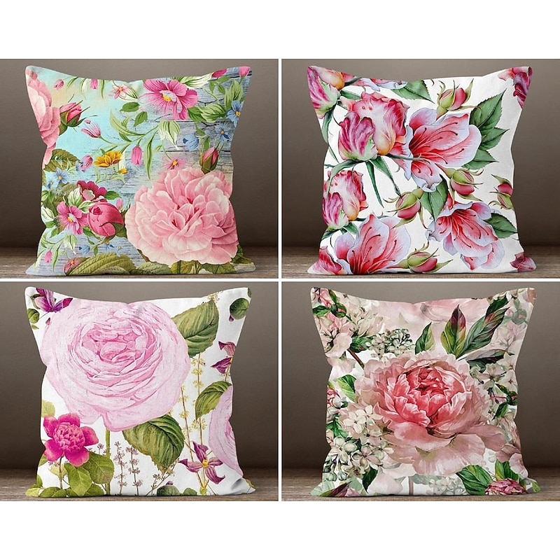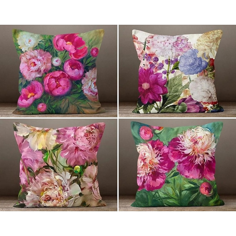 More information about Flowers Double Side Pillow Cover 4PC silky Decorative Square Cushion Case Pillowcase for Bedroom Livingroom Sofa Couch Chair