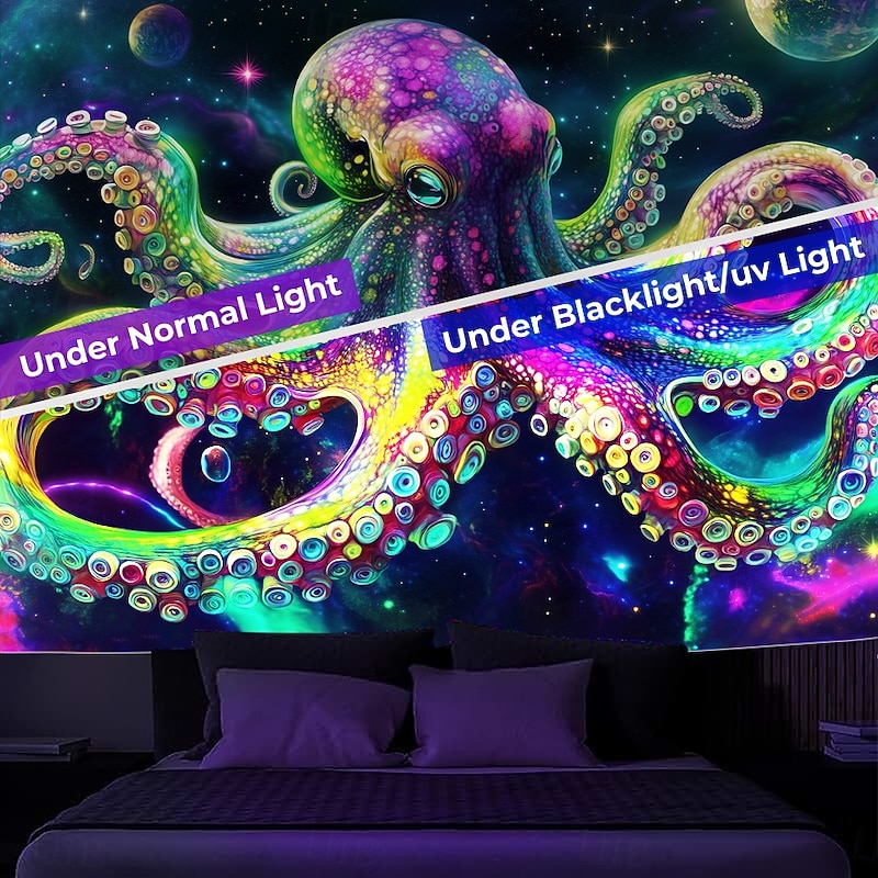 $17.99 - Blacklight Tapestry Glow in the Dark Glow Party UV Reactive Trippy Misty Animal Octopus Hanging Tapestry Wall Art Mural for Living Room Bedroom 2025. Shop for cheap Blacklight Tapestries online? Buy at lightinthebox.com on sale today!