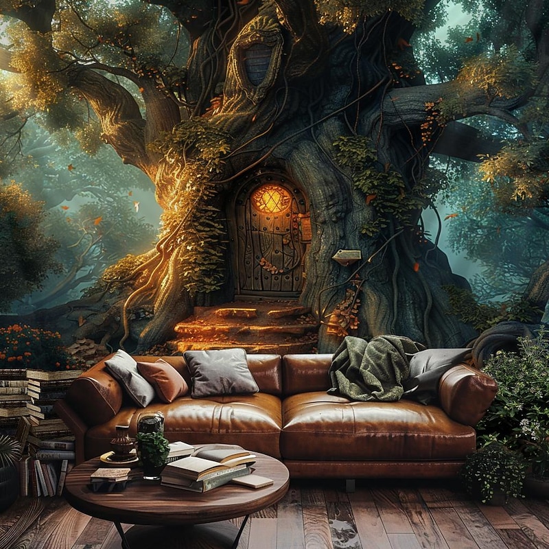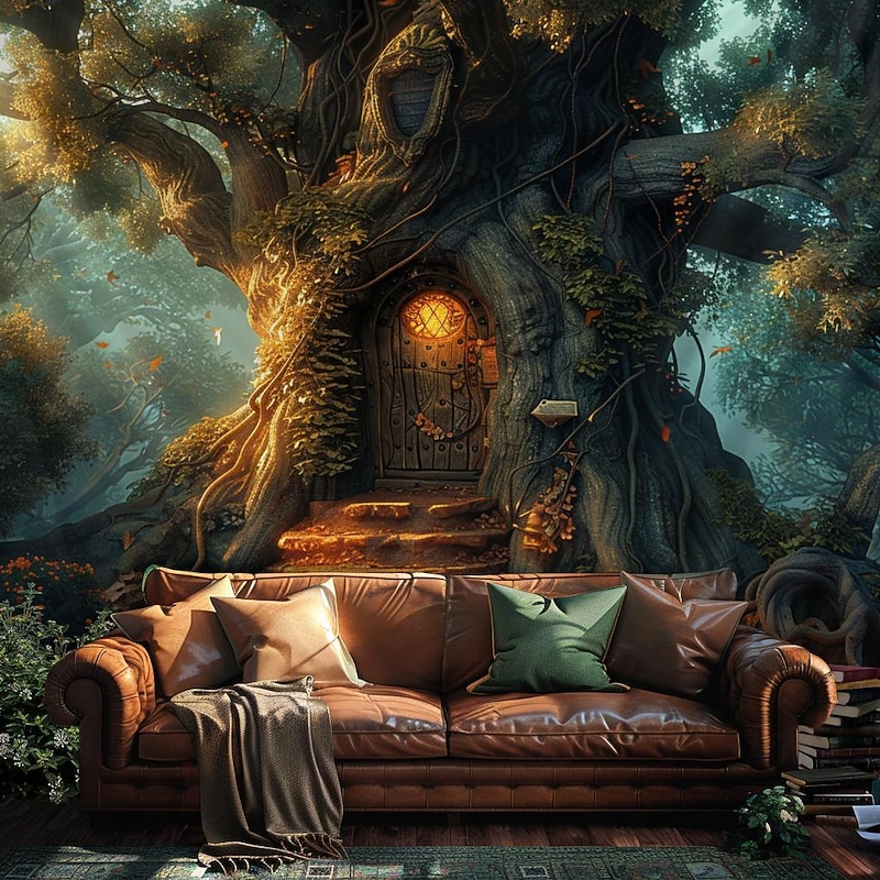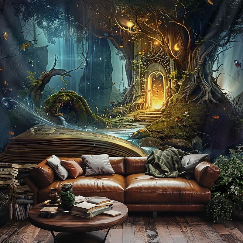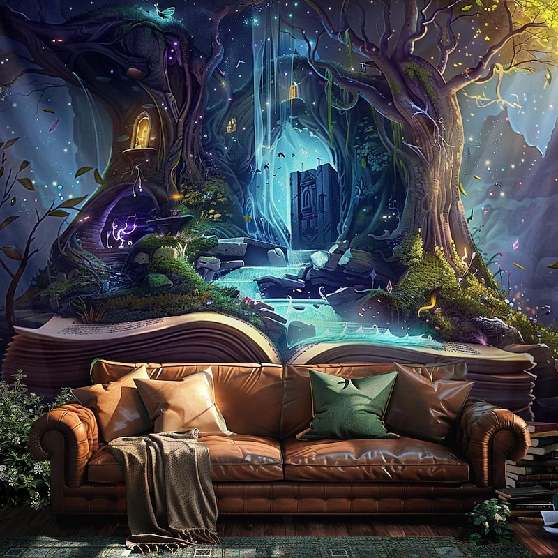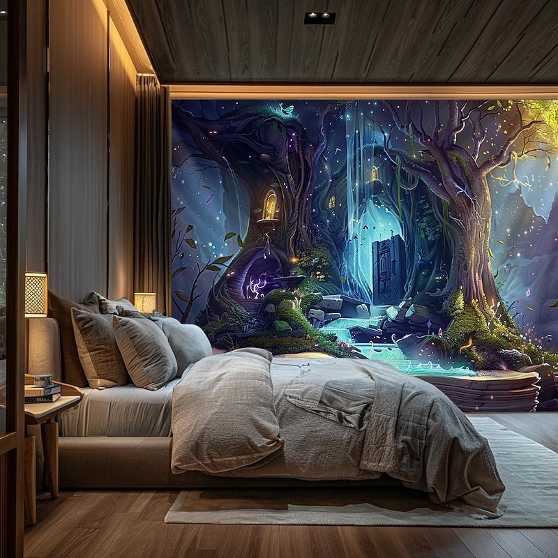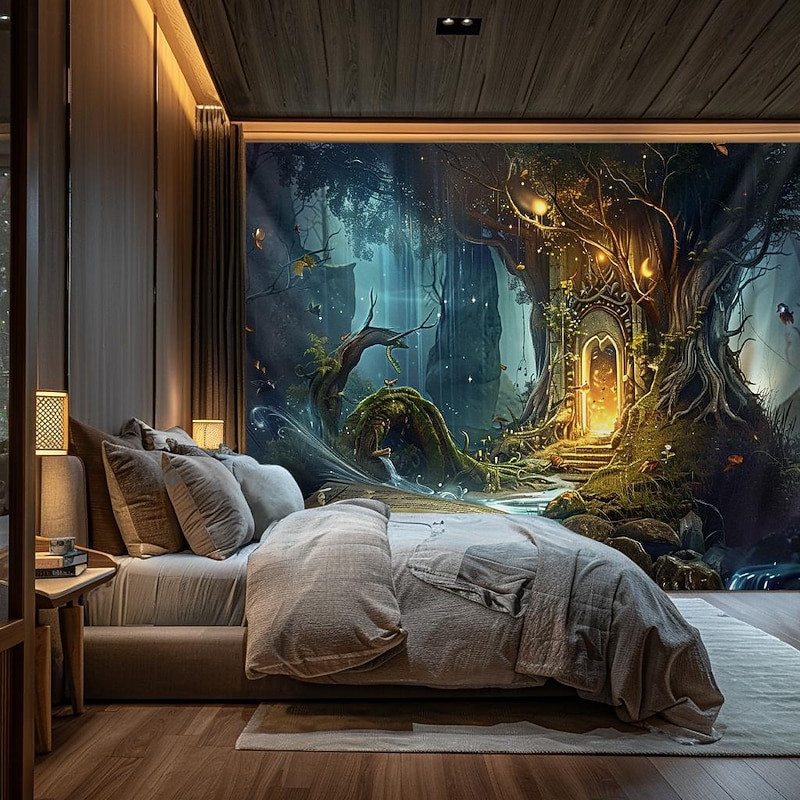 Fantasy Dream Tree House Hanging Tapestry Wall Art Large Tapestry Mural Decor Photograph Backdrop Blanket Curtain Home Bedroom Living Room Decoration