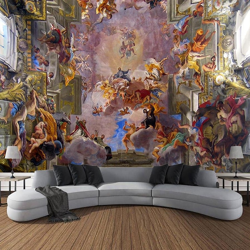 trending ! Vintage Renaissance Ceiling Hanging Tapestry Wall Art Large Tapestry Mural Decor Photograph Backdrop Blanket Curtain Home Bedroom Living Room Decoration