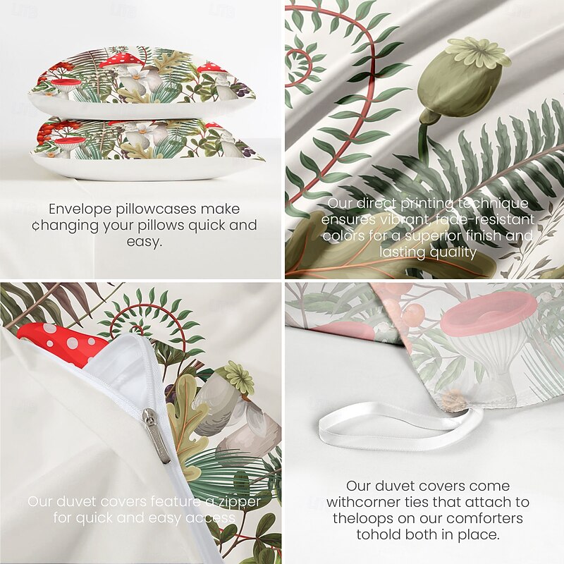 More information about Mushrooms Plants Duvet Cover Full Size Bedding Set Bed Sets Quilt Cover silky Lightweight Comforter Cover with 2 Pillowcases for Summer Spring