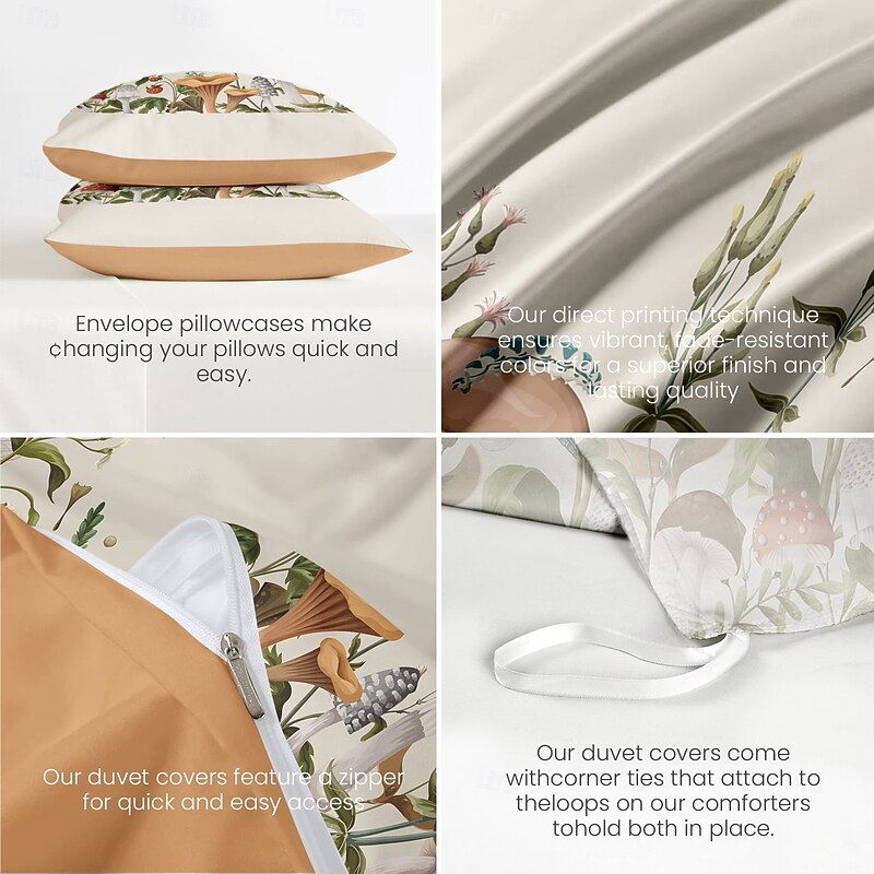 $63.99 - Mushrooms Plants Duvet Cover Full Size Bedding Set Bed Sets Quilt Cover Soft Lightweight Comforter Cover with 2 Pillowcases for Summer Spring 2025. Shop for cheap 100% Cotton online? Buy at lightinthebox.com on sale today!