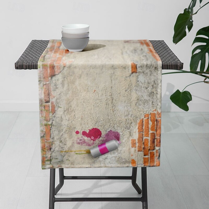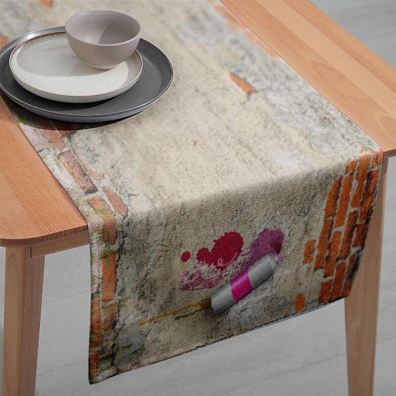 trending ! 1PC plain Graffiti Table Runner Table Flag - Digital Printed Rectangular Tablecloth for Restaurant, Banquet, Party Decoration (33x180cm/13x70.5in)