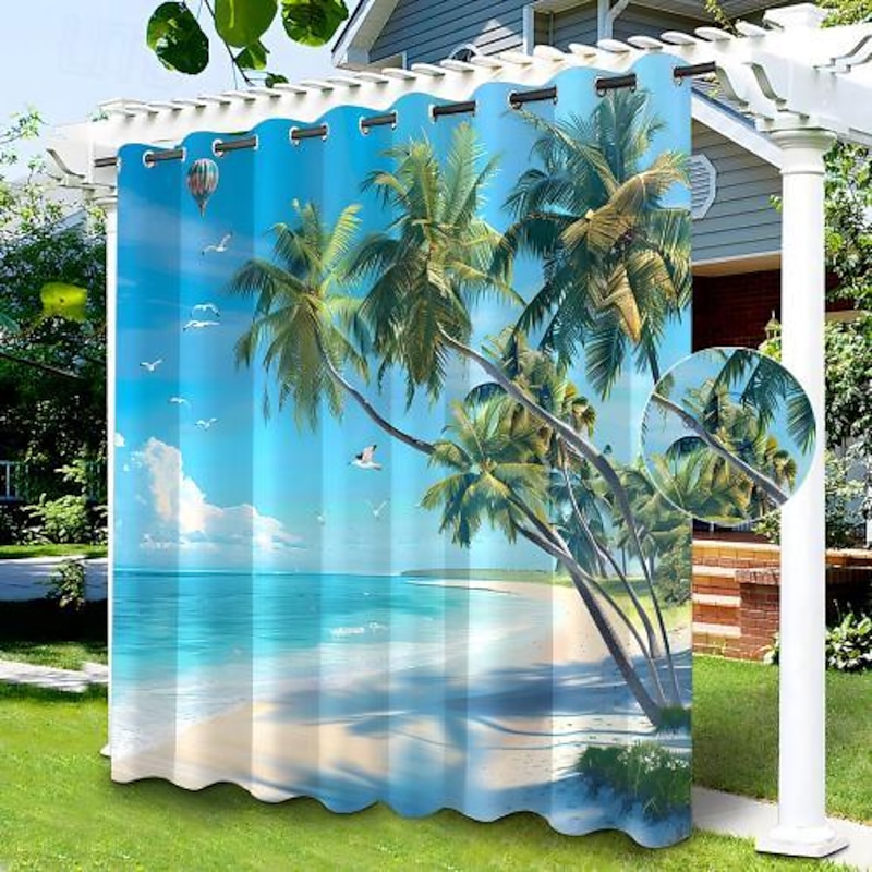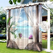 Waterproof Outdoor Curtain Privacy, Sliding Patio Beach Curtain Drapes , Pergola Curtains Grommet For Gazebo, Balcony, Porch, Party, Hotel, 1 Panel