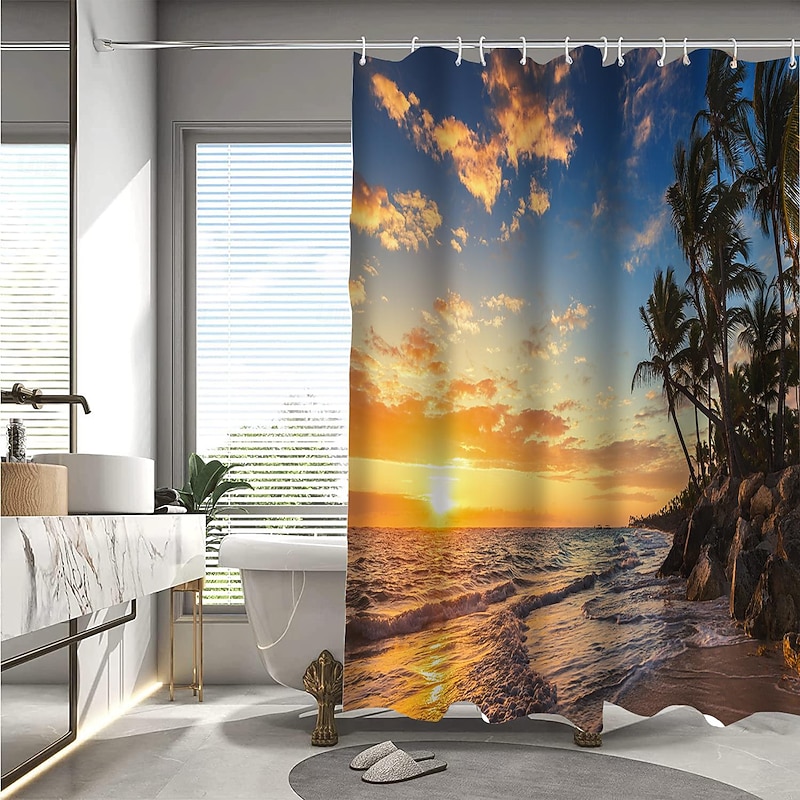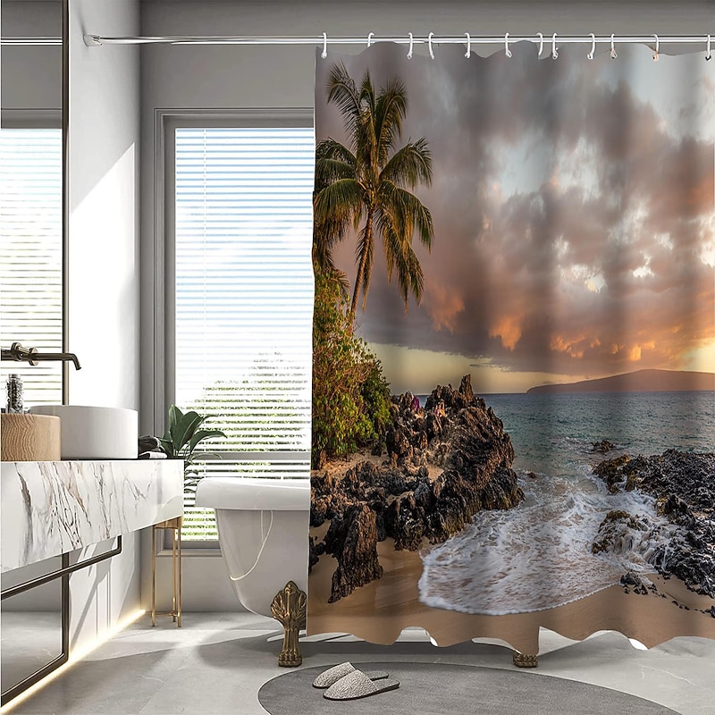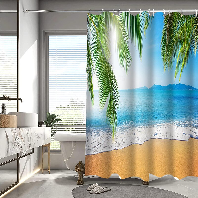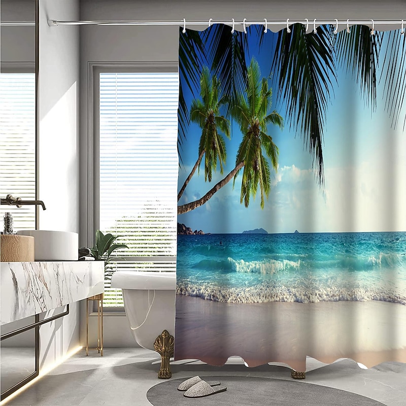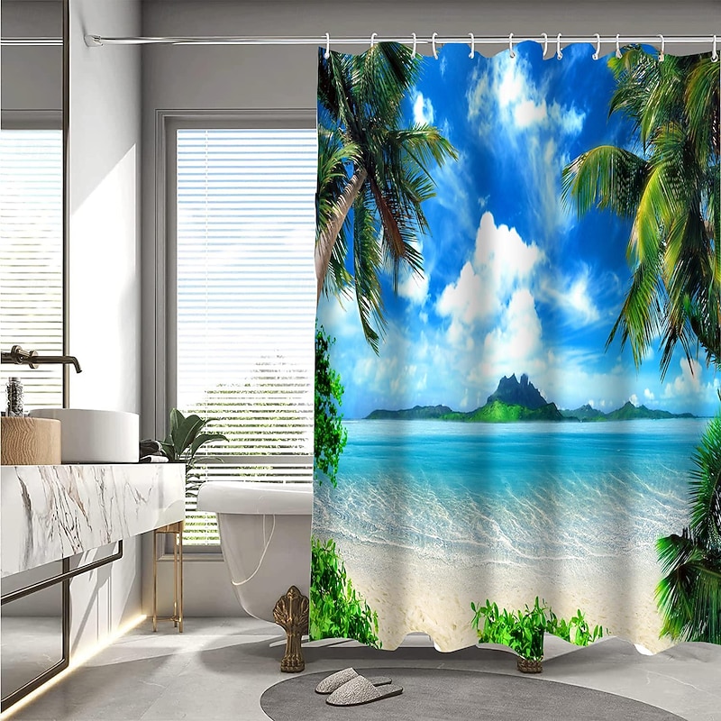 Why Choose Shower Curtain with Hooks 180cm*180cm(70"*70") Polyester Washable Waterproof Pattern Bathroom Bathtub Decor Beach Seawater Coconut Tree Landscape?