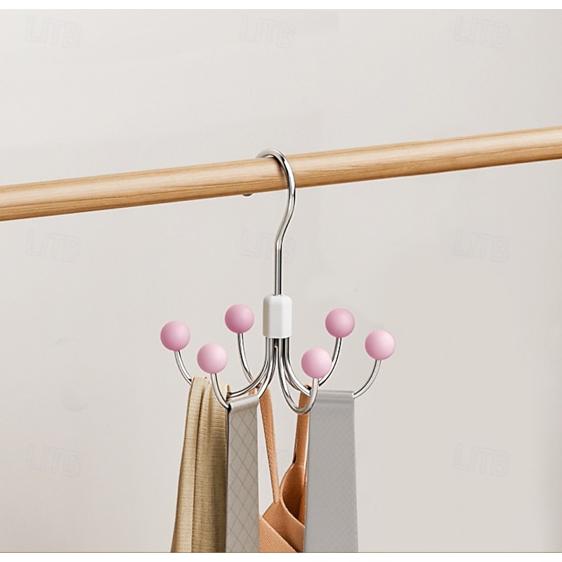 trending ! Six-Prong Hook, 360-Degree Rotating Wardrobe Bag Hanger, Multi-Functional Underwear Hanger, Coat and Hat Storage Hook
