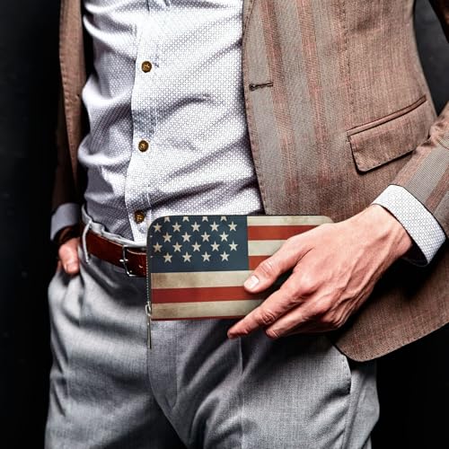Pu Leather Wallet For Women Girl, Zip Around Credit Card Holder Vintage American Usa Flag Long Wallet Clutch Purse Waterproof Travel Handbag