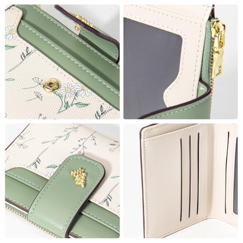 - PU Leather Wallet Holder Floral Bifold Clutch for (Green)