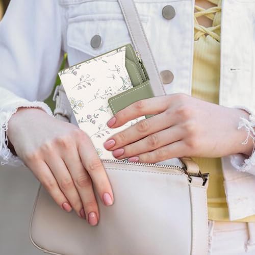 Cute Green Flower Wallet for Women Small Kawaii Coin Purse with ID Window Lightweight and chic Design Compact Cash Wallet for Ladies