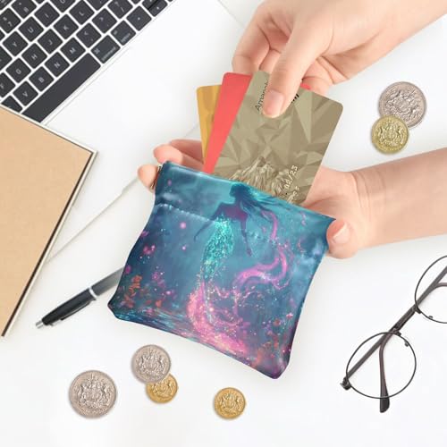 trending ! Mermaid Mystical Glow Women Leather Cash Wallet Portable Personal Items Organizer for Woman Girl