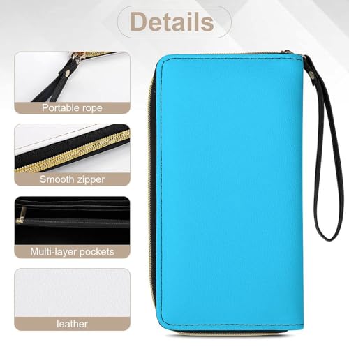 More information about Girl's Travel Purse Fashion Design, Huge Storage Capacity Purse, Cute Decor Wallet, Long PU Zipper Wallet With Rope Blue