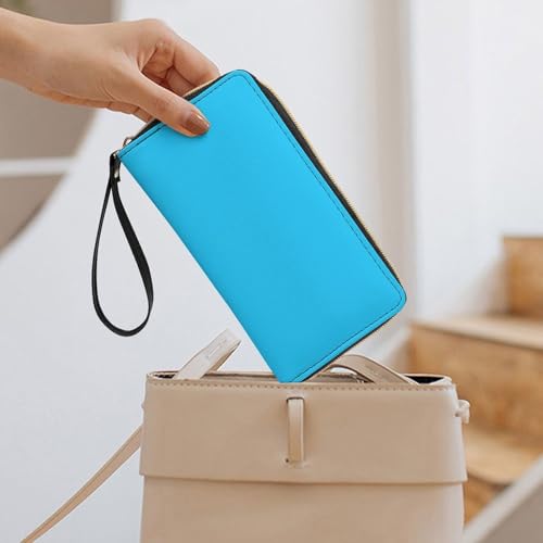 trending ! Girl's Travel Purse Fashion Design, Huge Storage Capacity Purse, Cute Decor Wallet, Long PU Zipper Wallet With Rope Blue