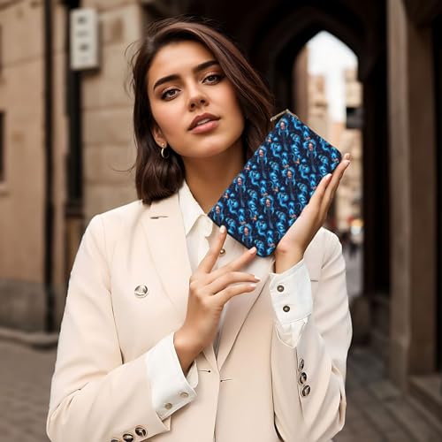 More information about Blue Flame Skull Guitar Print Wallet Women Men, Long PU Leather Wallets for Women, Cute Womens Travel Wallet Purse Pouch with Zipper Pocket