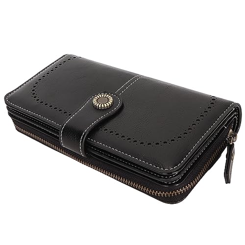 Brand: YedaHcyColor: BlackMaterial: PolyurethanePattern: SolidProduct Dimensions: 7.87D x 4.33W x 1.57H: This leather wallet features blocking , which your credit cards and IDs from unauthorized scans, keeping your information safe from digital pickpocketing.LARGE CAPACITY: With a spacious , this wallet can hold coinss, cash, phone, keys, checkbook, lipstick, and other gist, making it for everyday use.STYLISH AND FUNCTIONAL: dual snap closure with customized bronze sunflower buttons adds a touch of elegance, while removable wrist strap provides convenience and security.Durably MATERIAL: Made from PU leather, this wallet is both hardwearing and stylish, ensuring -lasting use.COMPACT AND PORTABLE: Its compact size fits in your or handbag, making it to carry wherever you go. Perfect for everyday use. High quality materials and excellent craftsmanship ensure long-lasting durability.