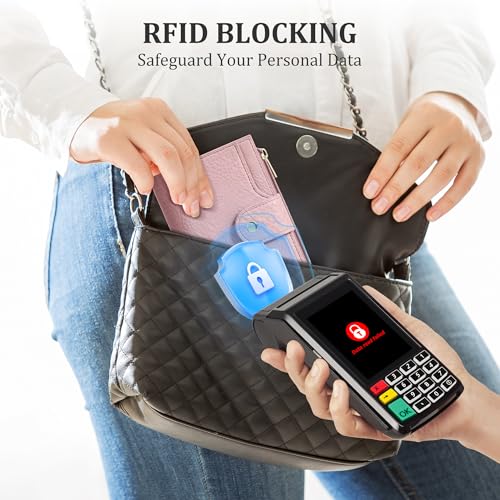Women's Bifold Wallet, RFID Blocking Credit Card Holder with Zipper, Travel Cute Coin Pocket Wallet for Ladies, Pink