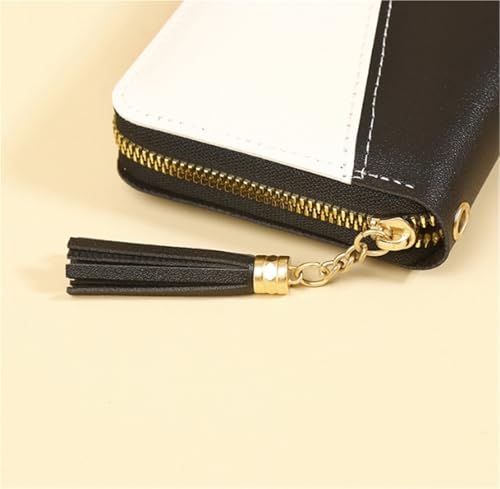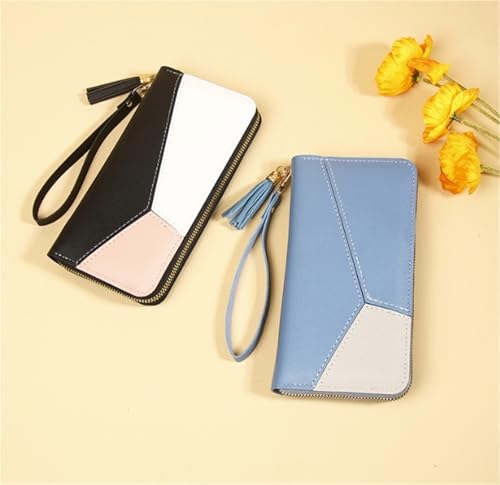 trending ! Wallet Stitching Contrast Color Long Wallet Zipper Tassel Large Capacity Wallet(Pink)