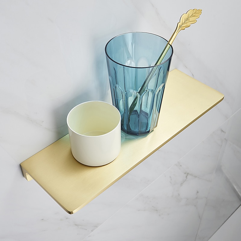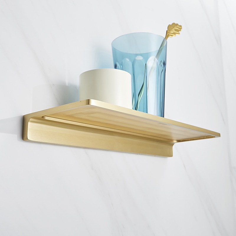 More information about Brushed Golden Bathroom Shelf Brass Wall Mounted Metal Floating Rectangle Shelf 1PC