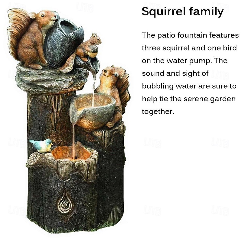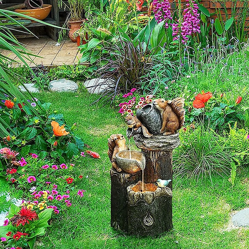 1. Enhance your garden with a whimsical water feature featuring cute squirrels or geese.