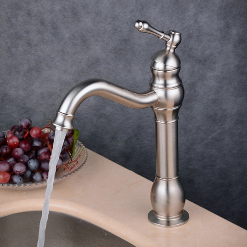 Bathroom Sink Mixer Faucet Deck Mounted, 360 Swivel Washroom Basin Taps Single Handle Rose One Hole Electroplated Faucet with sizzling and Cold Water Gold/Black/Brushed Gold/Brass/Rustic Nickel