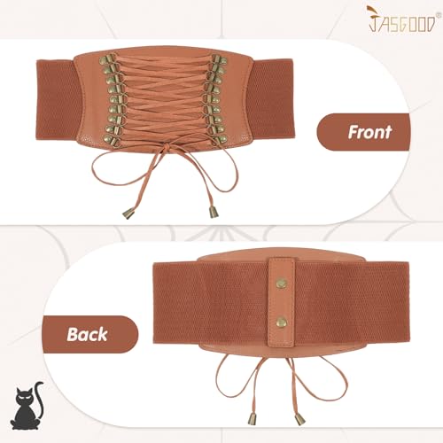 JASGOOD Women Elastic Corset Waist Belt Vintage Stretch Wide Belt Lace Up Corset Belt for Halloween Costume