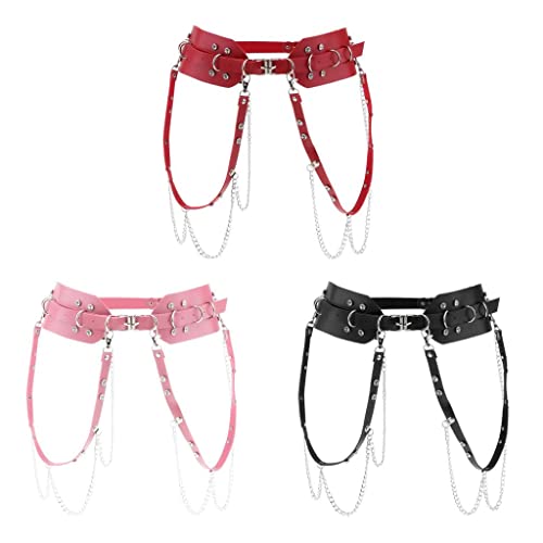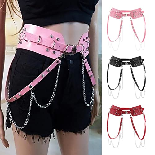 jojomis Women's Punk Waist Belt Leather Belt with Metal Chain Tassels Adjustable Wide Waistband Red 50 Inch Length