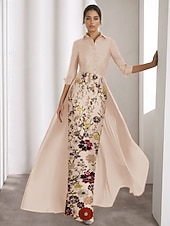 More information about Embroidered Column Evening Gown Elegant Formal Wedding Guest Floor Length Long Sleeve Shirt Collar Satin with Glitter