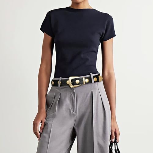 Women Black Belt with Gold Buckle Fashion Leather Belt Women Punk Waist Belt Studded Belt for Jeans Dress