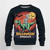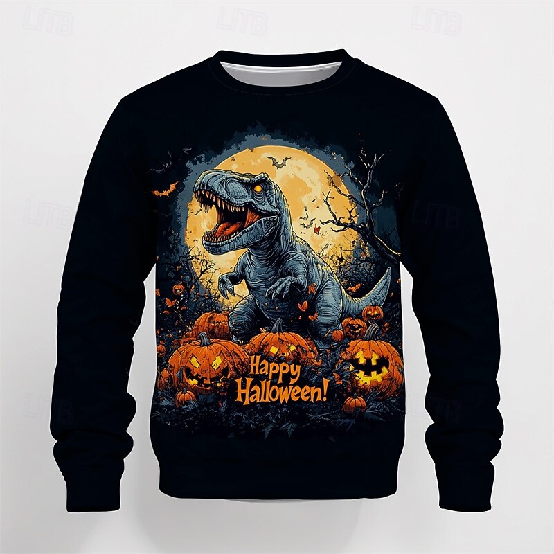 trending ! Boys' 3D Cartoon Pumpkin Dinosaur T shirt Tee Long Sleeve Spring Fall Fashion Basic Kids 4-12 Years Crew Neck Outdoor Casual Daily Regular Fit