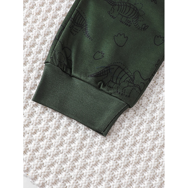 Why Choose 2 Pieces Toddler Boys' T-shirt & Pants Outfit Dinosaur Long Sleeve Crewneck Set School Fashion Daily Fall Winter 4-7 Years Army Green?