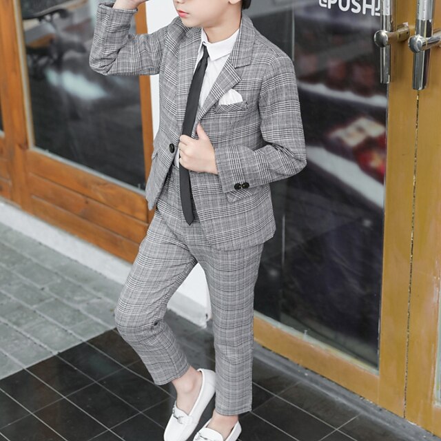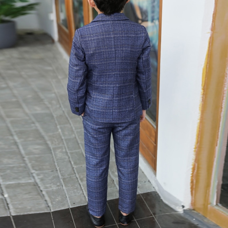 trending ! Boys 3D Plaid Suit & Blazer Long Sleeve Spring Fall Gentle Cotton Kids Toddler 2-8 Years Party Date Regular Fit