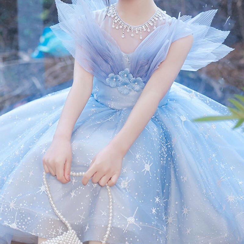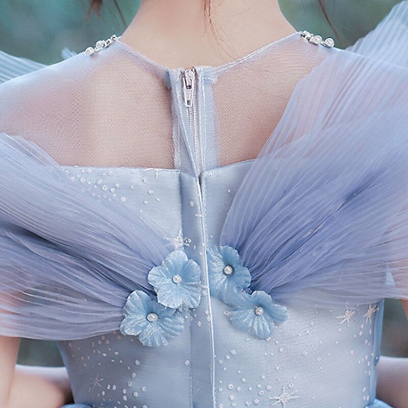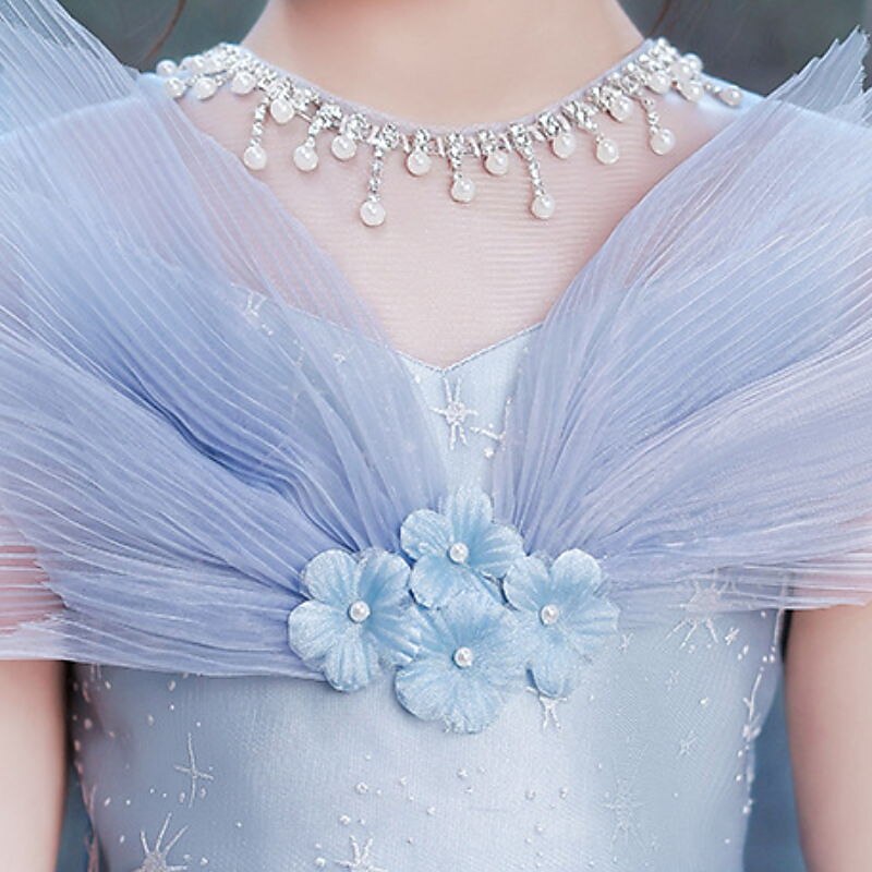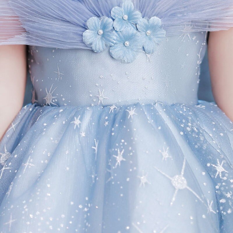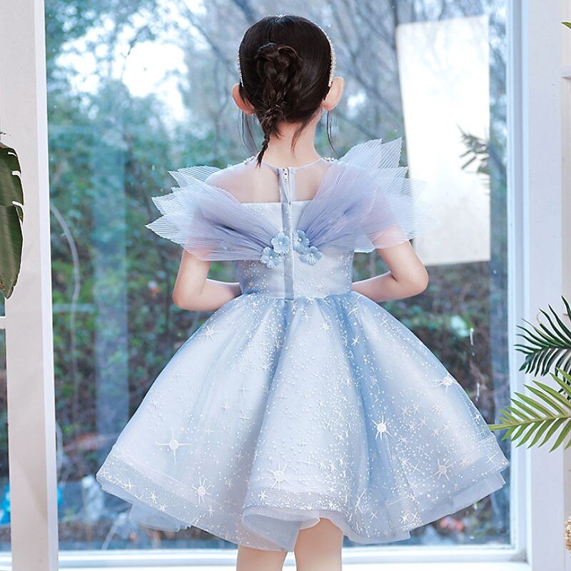 More information about Kids Girls' Dress Sequin Short Sleeve Performance Party Mesh Sparkle Bow Princess Sweet Cotton Tulle Asymmetrical A Line Dress Tulle Dress Summer Spring 3-12 Years Blue