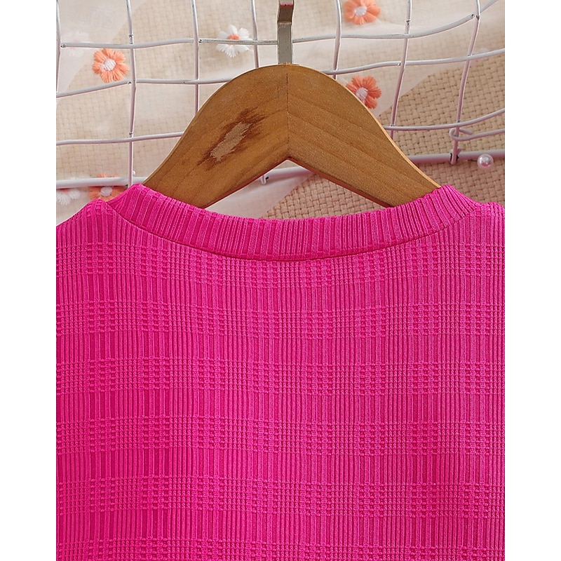 trending ! Kids Girls' Dress Rabbit Short Sleeve Outdoor Casual Fashion Adorable Polyester Knee-length Casual Dress A Line Dress Summer 4 years+ Rose Red