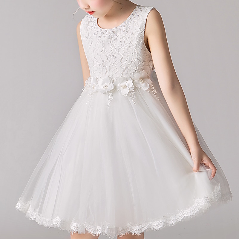 Why Choose Kids Girls' Flower Girl Dress Dress Solid Colored Flower Sleeveless Wedding Party Casual Lace Layered Cute Sweet Mesh Lace Tulle Pink Princess Dress 3-12 Years White Pink Purple?