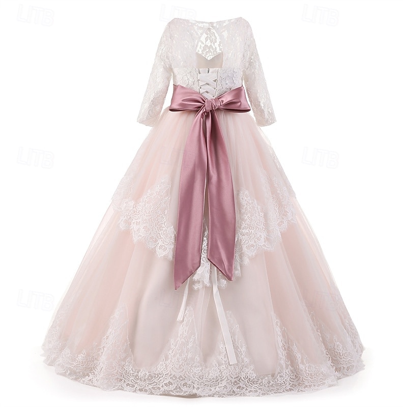 Why Choose Flower Girl Dress Kid's Girls' Princess Dress Performance Wedding Party Elegant attractive Mesh Solid Color Long Sleeve Crew Neck Light Yellow Light Pink 4 years+?