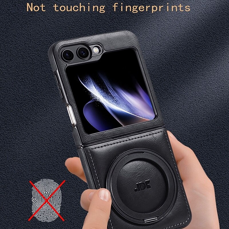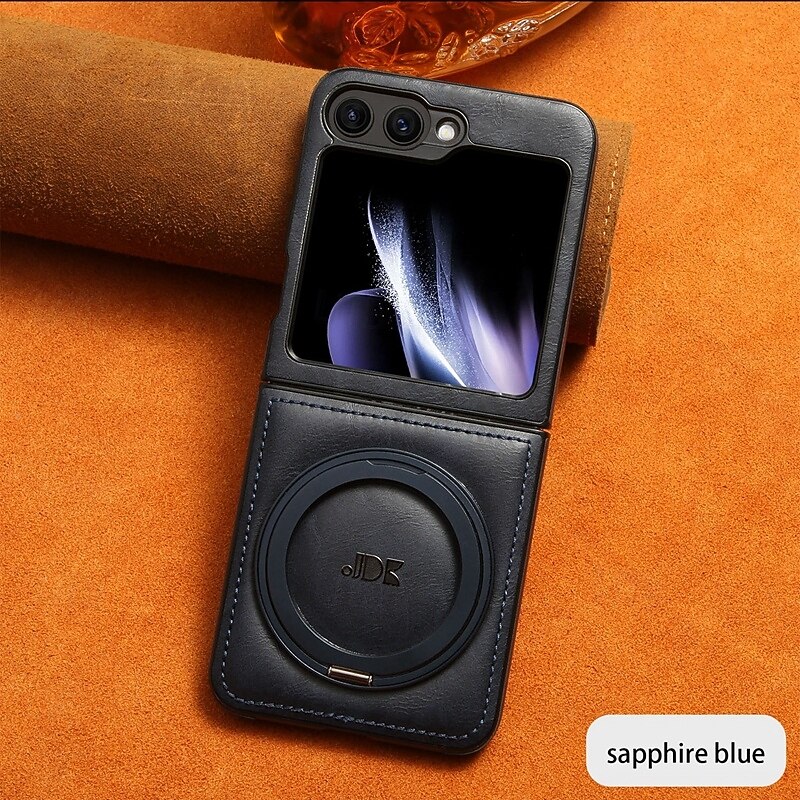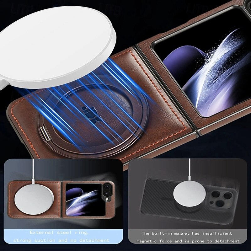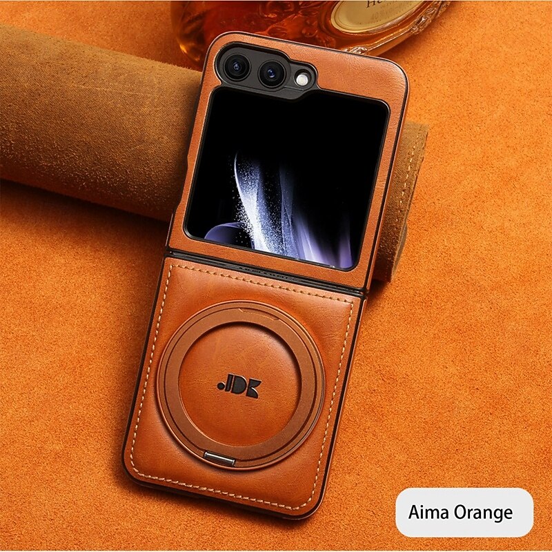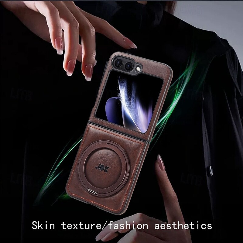 trending ! Phone Case For Samsung Galaxy Z Flip 6 Z Flip 5 Z Flip 4 Z Flip 3 Back Cover with Stand Holder Support Wireless Charging Shockproof Retro TPU PU Leather