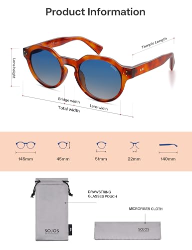 Origin: ImportedThese SOJOS round sunglasses for women and men have HD polarized lenses, which can effectively block glare from sunshine and prevent your eyes from long-term damage.These trendy round sunglasses are crafted for women and men who celebrate bold style and self-expression.Designed to highlight your facial contours.Unleash your individuality and let your personal style shine through every curve.From city explorations to nature escapades—be it driving,traveling,shopping,selfie sessions,cycling,climbing or fishing—SOJOS retro round sunglasses deliver versatile performance.Doubling as a fashionable accent,these timeless sunglasses transition seamlessly into your daily wardrobe,proving their worth through every season.Choose from a variety of frame colors, lens colors, and lens treatments when purchasing these SOJOS classic round sunglasses.Choose a color scheme that complements your personal brand and sense of style.Package Contents:The package round polarized sunglasses*1, microfiber pouch*1, microfiber glasses cleaning cloth*1, glasses box*1. Perfect for everyday use. finest materials and excellent craftsmanship ensure long-lasting durability.