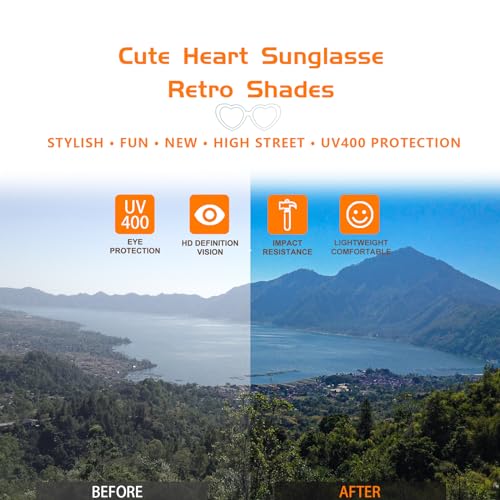 • finest Materials: These vintage heart sunglasses are made of sturdy polycarbonate, solid metal hinges, impact resistant lenses. The plush one-piece nose pad is tangle - friendly