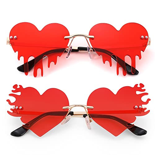 SCVGVER Dragonfly Frame Melting Heart Rimless Sunglasses for Women Men Vintage Creative 90s Sunglasses Frameless Glasses