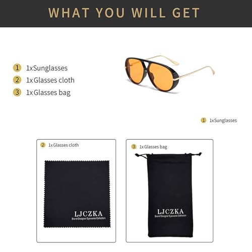 Origin: ImportedOversized Pilot Sunglasses: LJCZKA vintage retro double bridge design pilot sunglasses come with large frame design, which is not only aesthetically pleasing, but also provides greater protection for your cheeks. Wear it and enjoy the sunshine to your heart's contentUV400 Protection: LJCZKA lenses can block 100% of UVA and UVB rays, protect your eyes from ultraviolet rays when you go out, and provide you with a natural and clear vision, allowing you to have a better experienceHigh-quality Materials: Lightweight and compact high-quality plastic and metal frame improve your wearing comfort. These sunglasses are made from finest lenses, comfortable nose pads(wearing for a long time will not cause discomfort to the nose), reinforced metal hinges, all the details ensure you a long time usingProducts Size: Lens height: 57 mm (2.24 inches); lens width:50 mm (1.97 inches); leg length: 150 mm(5.91 inches); Bridge width: 19 mm (0.75 inches); frame length: 146 mm (5.75 inches)Wide Range of Application: Trendy oversized sunglasses are suitable for outdoor activities (such as shopping,traveling,vacation,photos, beach,party). It can also be matched with various functions and clothing. It is a good choice for fashionable daily accessories Perfect for everyday use. High quality materials and excellent craftsmanship ensure long-lasting durability.