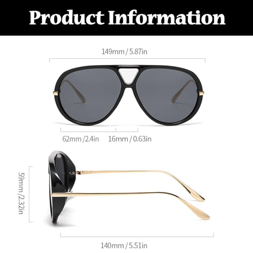 LJCZKA Oversized Pilot Sunglasses for Women Men Trendy Large Double Bridge Shield Sun Glasses Fashion 70s Big Shades