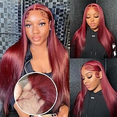 $196.99 - Remy Human Hair 13x4 Lace Front Wig Free Part Peruvian Hair Yaki Straight Burgundy Wig 150% Density with Baby Hair Glueless Pre-Plucked For wigs for black women Long Human Hair Lace Wig 2025. Shop for cheap Human Hair Lace Front Wigs online? Buy at lightinthebox.com on sale today!