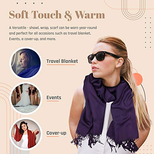 More information about Plum Feathers Premium Solid Color and Metallic Fashion Scarf, Womens Pashmina Shawl Wrap with Fringes