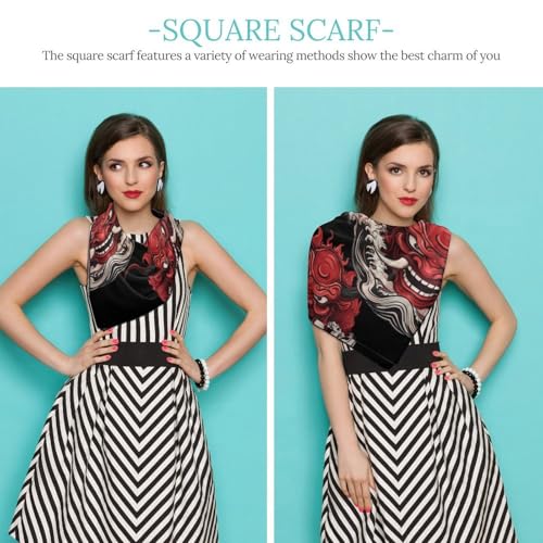 trending ! Generic Japanese Wave Demon Red Samurai Oni Mask Head Scarf Square Bandana Neck Scarfs Hair Wrap Scarves for Women Men, 0ne size