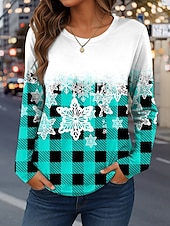 This Women's T Shirt Graphic Plaid Snowflake Vintage Fashion contemporary Long Sleeve Crew Neck Regular Tops Daily Weekend Print Red Blue Purple Green Spring Fall Winter combines elegant design with practical functionality. Every detail has been carefully considered to ensure you get the best possible experience. The superior construction means this product will serve you well for years to come.