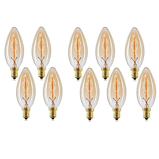 Why Choose 10pcs 40W Edison Vintage Incandescent Light Bulb Dimmable E14 C35 Antique Filament Amber comfortable White for Chandelier Light 220-240V?