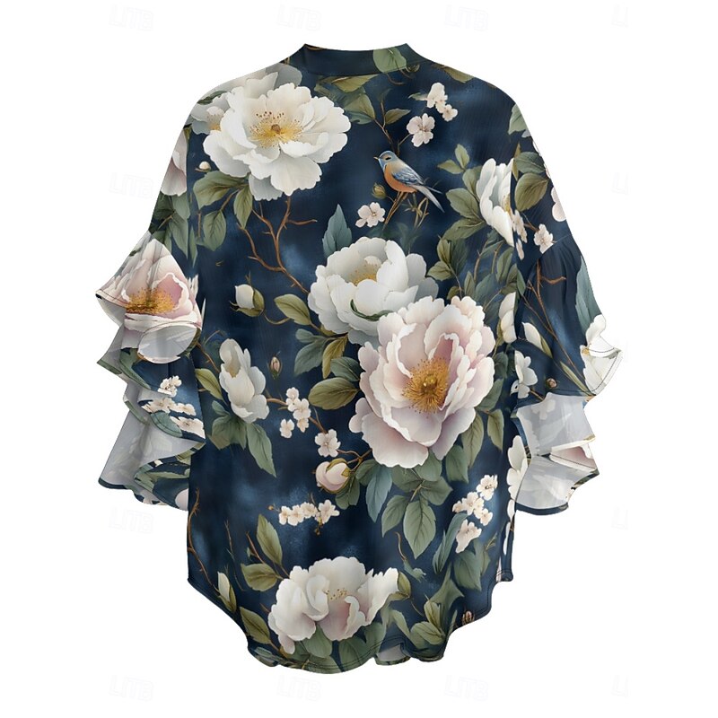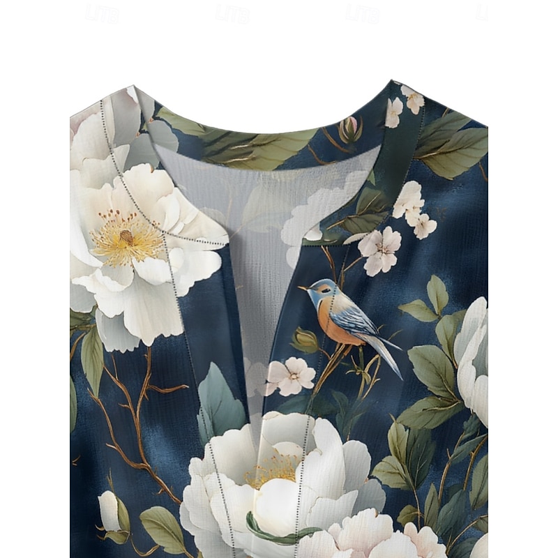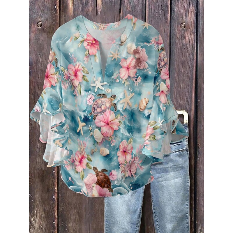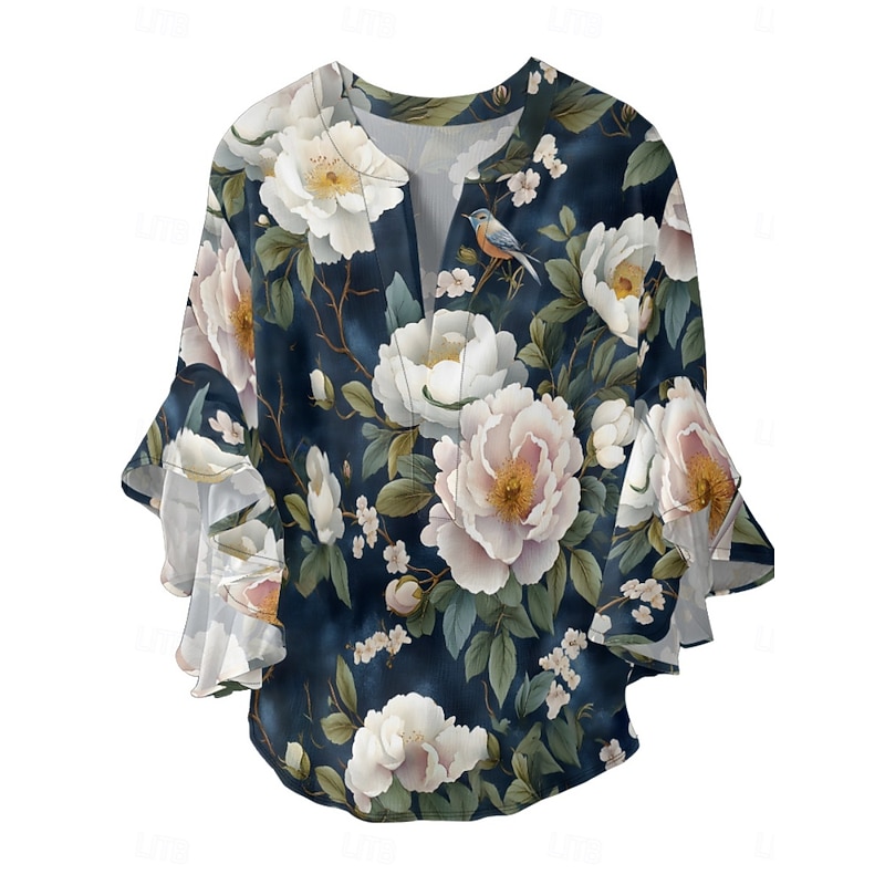 This Women's Blouse Floral contemporary Modern 3/4 Length Sleeve V Neck Regular Tops Daily Holiday Ruffle Print Grass Green Pink Navy Blue Blue Green Summer combines elegant design with practical functionality. Every detail has been carefully considered to ensure you get the best possible experience. The superior construction means this product will serve you well for years to come.