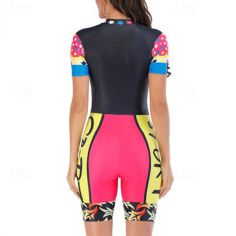 More information about Women's Rash Guard One Piece Swimsuit UV Sun Protection UPF50+ Long Sleeve Swimwear Bathing Suit Front Zip Swimming Surfing Beach Water Sports Patchwork Printed Summer Spring Autumn