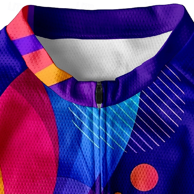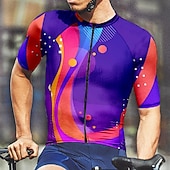 trending ! Men's Cycling Jersey Geometic Short Sleeve Bike Tee Tshirt Jersey with 3 Rear Pockets Mountain Bike MTB expedient Dry Anatomic Design Wicking Breathable Sports Purple Clothing Apparel