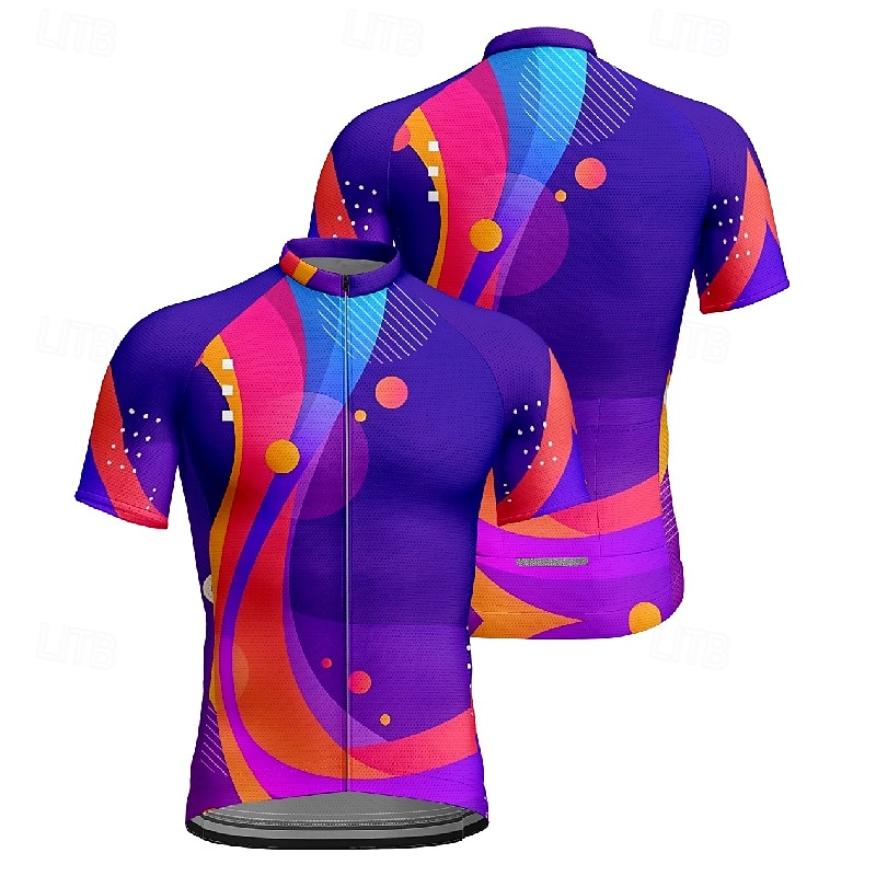 More information about Men's Cycling Jersey Geometic Short Sleeve Bike Tee Tshirt Jersey with 3 Rear Pockets Mountain Bike MTB rapid Dry Anatomic Design Wicking Breathable Sports Purple Clothing Apparel