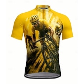 trending ! Men's Cycling Jersey Graphic Short Sleeve Bike Jersey Top with 3 Rear Pockets UV Resistant expedient Dry Front Zipper Reflective Strips Sports Yellow Clothing Apparel